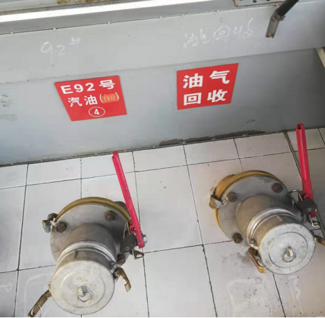 加油站设3座SF埋地卧式油罐,其中50m3汽油储罐1座,30m3柴油储罐2座。总容积为110m3,依据《汽车加油加气站设计与施工规范》(GB50156-2012)(2014年版)的规定,柴油罐容积折半计入油罐总容积,则折合后油罐总容积为80m3,为三级加油站。加油岛处设置双排停车道,4台加油机,其中2台自吸泵式汽油加油机(带油气回收)、2台自吸泵式柴油加油机。