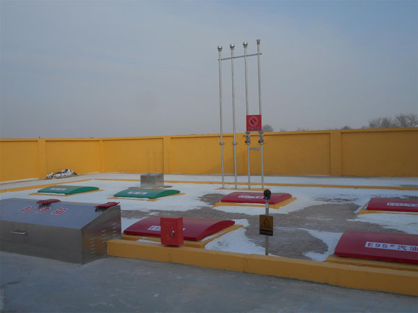 加油部分:设SF双层汽油储罐30m3×2台,柴油储罐30m3×2台,总罐容120m3,按汽油折合后为90m3。设1台四枪双油品潜油泵汽油加油机(带油气回收功能),1台双枪单油品潜油泵汽油加油机(带油气回收功能),2台双枪双油品潜油泵柴油加油机,设分散式加油油气回收系统、卸油油气回收系统。