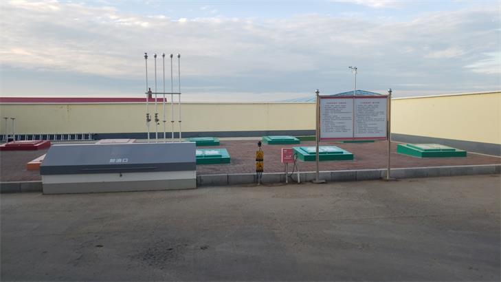 黑龙江省盛泰丰泽成品油经销有限公司盛泰丰泽加油站位于黑龙江省鸡西市虎林市八五六农场第三管理区一站共三线Y409-17公里150米路北,站内设5座SF油罐,其中50m3柴油储罐3座, 50m3汽油储罐2座。总容积为250m3,依据《汽车加油加气站设计与施工规范》(GB50156-2012)(2014年版)的规定,柴油罐容积折半计入油罐总容积,则折合后油罐总容积为175m3,为一级加油站。潜油泵型加油机4台(汽油加油机为油气回收型),为四枪四油品加油机,加油机底座为防渗底座。