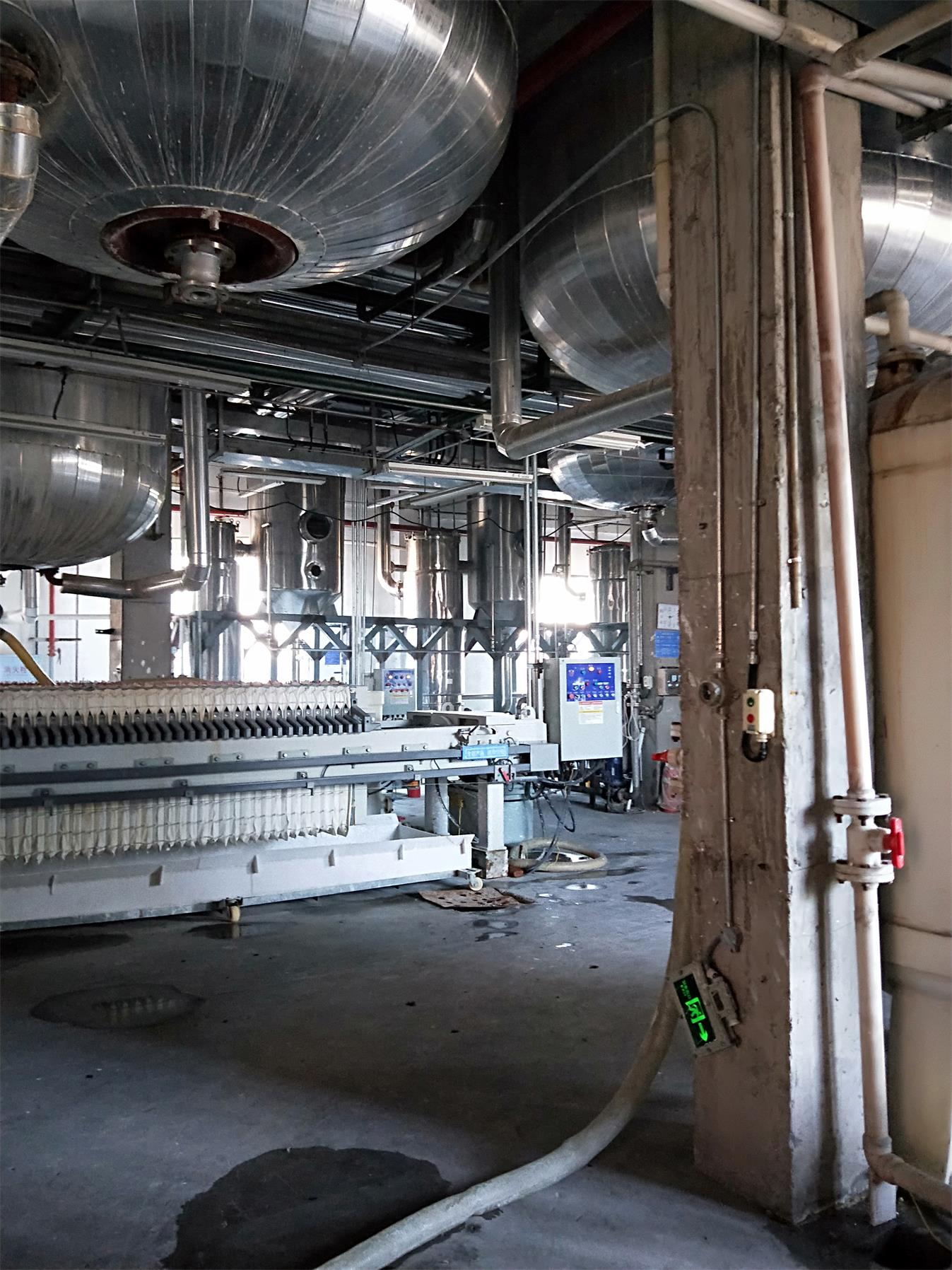 厂区主要建筑有钠盐生产车间、防(拨)水剂生产车间、双氢厂房Ⅰ、双氢厂房Ⅱ、苯甘氨酸系列产品生产车间、尿苷及鸟嘌呤生产车间、钠库、原料罐区、液氨储罐区、盐酸储罐区、氰化钠和液碱仓库、中间品库、氨压缩机及配电间、制氮间、配电间、消防泵房、消防水池、循环水池、锅炉房、污水处理站、堆场Ⅰ、堆场Ⅱ、堆场Ⅲ等。
