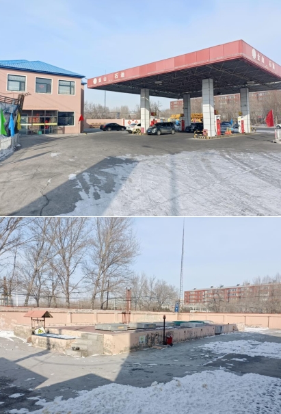 大庆市红岗区金山加油站罐区为地下储罐区,采用单层储罐加防渗罐池的防渗漏措施。共设有6个埋地卧式油罐,其中柴油储罐2座,单罐容积均为30m3;汽油储罐4座,单罐容积均为30m3。总容积180m3,根据《汽车加油加气加氢站技术标准》GB50156-2021第3.0.9条要求,按柴油储罐容积折半计算为150m3,属于二级加油站。站内设4台加油机,其中3台汽油加油机,1台柴油加油机。站内设有分散式汽油加油油气回收系统和汽油卸油油气回收系统。