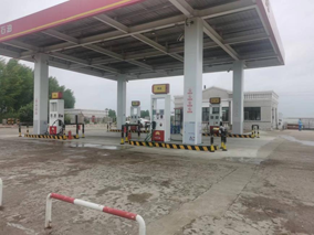地下储罐区,采用双层储罐的防渗漏措施。共设有4个埋地卧式油罐,其中柴油储罐3座,单罐容积均为30m3;汽油储罐1座,单罐容积为30m3。总容积120m3,根据《汽车加油加气加氢站技术标准》GB50156-2021第3.0.9条要求,按柴油储罐容积折半计算为75m3,属于三级加油站。站内设2台双枪自吸泵加油机,其中1台双枪双油品自吸泵柴油加油机,1台双枪双油品自吸泵汽油加油机,站内设有分散式汽油加油油气回收系统和汽油卸油油气回收系统。
