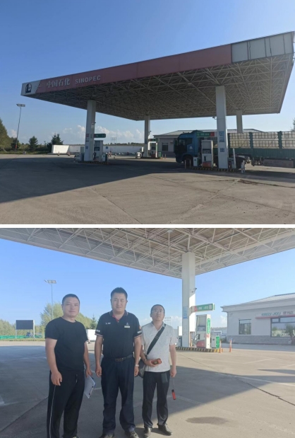黑龙江省石化交投能源科技有限责任公司桦南罗泉一加油站罐区为地下储罐区,采用双层油罐的防渗漏措施。共设有5个埋地卧式油罐,其中柴油储罐3座,单罐容积均为30m3;汽油储罐2座,单罐容积均为30m3。总容积150m3,根据《汽车加油加气加氢站技术标准》GB50156-2021第3.0.9条要求,按柴油储罐容积折半计算为105m3,属于二级加油站。站内设有4台加油机,其中双枪汽油加油机1台,双枪柴油加油机2台,双枪汽柴油一体加油机1台。站内设有分散式汽油加油油气回收系统和汽油卸油油气回收系统。