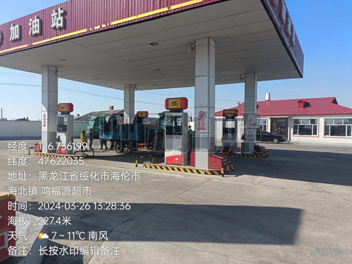 海伦市海北镇爱国村农业机械管理服务站罐区为埋地储罐区,采用双层油罐的防渗措施。共设有6个埋地卧式油罐,其中汽油罐2座,单罐容积均为20m3;柴油罐4座,单罐容积均为30m3。总容积160m3,根据《汽车加油加气加氢站技术标准》GB50156-2021第3.0.9条要求,按柴油储罐容积折半计算为100m3,属于二级加油站。站内设有4台加油机,其中汽油加油机2台,柴油加油机2台。站内设有分散式汽油加油油气回收系统和汽油卸油油气回收系统。