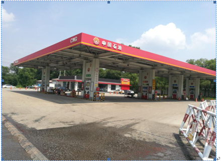 加油部分:油罐采用FF双层储罐,设置卸油油气回收及分散式加油油气回收系统。加油区及站房营业室设置急停开关、罐区附近设置声光报警系统。加油站有3台四枪双油品潜油泵加油机(7枪汽油5枪柴油),埋地油罐共有4座(30m3汽油罐2座,30m3柴油罐2座),总容量120m3,等级容量90m3,根据《汽车加油加气加氢站技术标准》(GB50156-2021)加油站的等级划分规则,该站的规模属于二级加油加气站。
