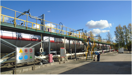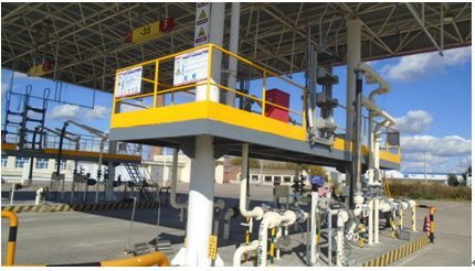 付油设施:付油方式为公路发运,有汽车下装付油鹤位5个,其中,发付柴油的鹤位4个,发付航空汽油的鹤位1个(停用)。