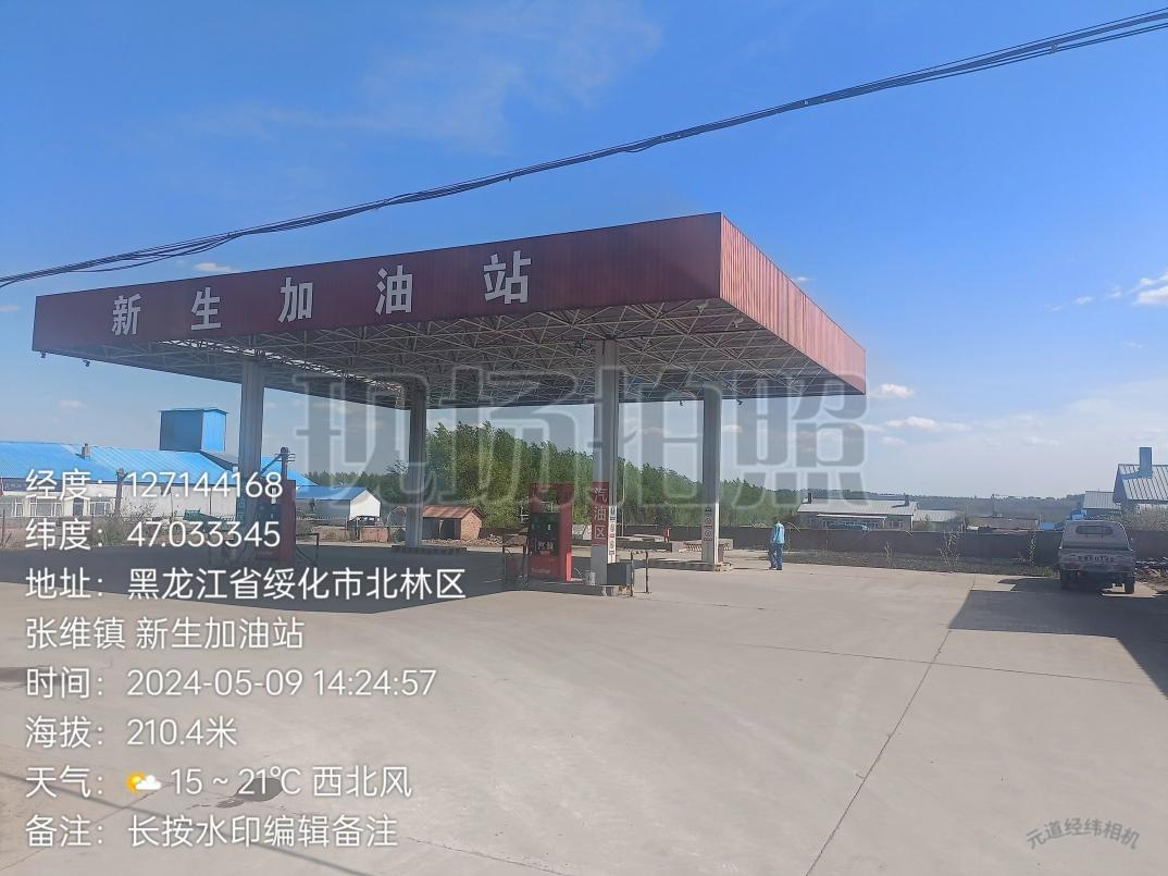 绥化市北林区新生加油站罐区为地下储罐区(非承重),采用双层油罐的防渗漏措施。共设有2个埋地卧式油罐,其中柴油储罐1座,单罐容积为20m3;汽油储罐1座,单罐容积为20m3。总容积40m3,根据《汽车加油加气加氢站技术标准》GB50156-2021第3.0.9条要求,按柴油储罐容积折半计算为30m3,属于三级加油站。站内设有2台加油机,其中汽油加油机1台,柴油加油机1台。站内设有分散式汽油加油油气回收系统和汽油卸油油气回收系统。