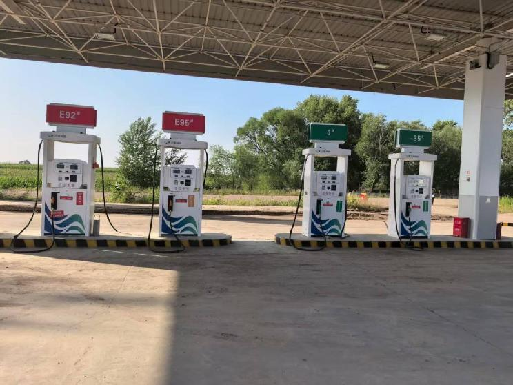 龙江县富景加油站罐区为地下储罐区(非承重罐区),采用单层油罐设置防渗罐池的防渗措施。共设有4个埋地卧式油罐,其中50m3乙醇汽油储油罐2座、50m3柴油储油罐2座。总容积为200m3,根据《汽车加油加气加氢站技术标准》GB50156-2021第3.0.9条要求,按柴油储罐容积折半计算为150m3,属于二级加油站。站内设有4台加油机,其中2台双枪自吸泵汽油加油机,2台双枪潜油泵柴油加油机。站内设有分散式汽油加油油气回收系统和汽油卸油油气回收系统。