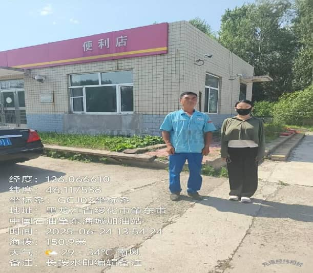 时间:2025.6.24参与人员: 吴迪 刘立春 勘察情况:中国石油天然气股份有限公司黑龙江绥化销售分公司肇东经营部海城加油站位于黑龙江省绥化市肇东市海城乡。站区东侧为民房(三类保护物);西侧为道路(次干路)和变压器(丙类物品厂房)以及杆高8米的架空电力线(有绝缘层);南侧为305省道(主干路)和架空通信线以及杆高8米的架空电力线(有绝缘层);北侧为林地