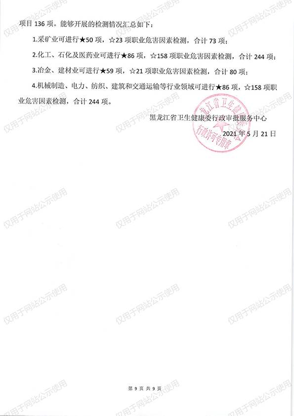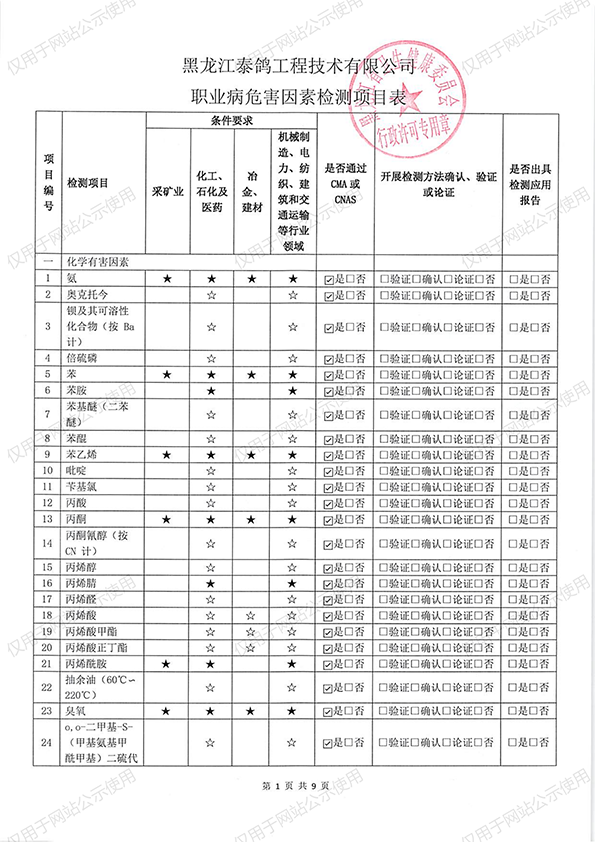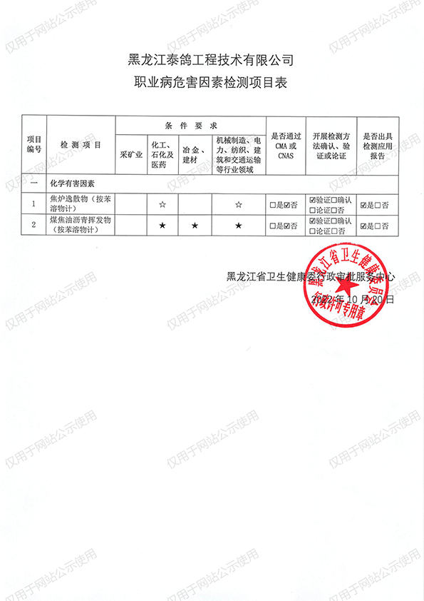 职业卫生项目公示