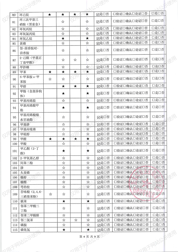 职业病危害因素检测项目表